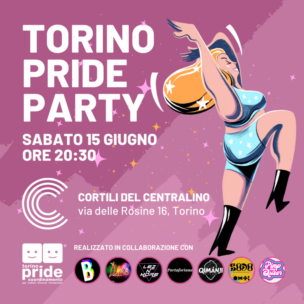 Il 15 giugno celebra il tuo orgoglio alla festa ufficiale del Torino Pride! Dopo la parata del Torino Pride che si concluderà al Parco del Valentino vieni al Centralino Club, l’Official Pride Party inizierà a partire dalle ore 20.30 per tutta la notte. Il party si svolgerà nei cortili del Centralino e proseguirà in tutti gli spazi interni del locale. Dalle 20.30 alle 22.30 ci saranno due postazioni di cibo con opzioni vegetariane e vegane ma non sono garantite opzioni senza glutine o senza lattosio. I ricavati della serata saranno interamente devoluti al Coordinamento Torino Pride che potrà in tal modo coprire i costi dell’organizzazione del Pride di quest’anno.